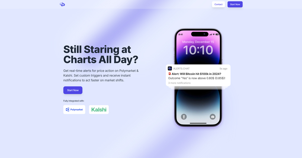 Alerts Chat 是一款专为交易者设计的 Telegram 提醒工具,旨在帮助用户及时获取 Polymarket 和 Kalshi 的市场价格动态。