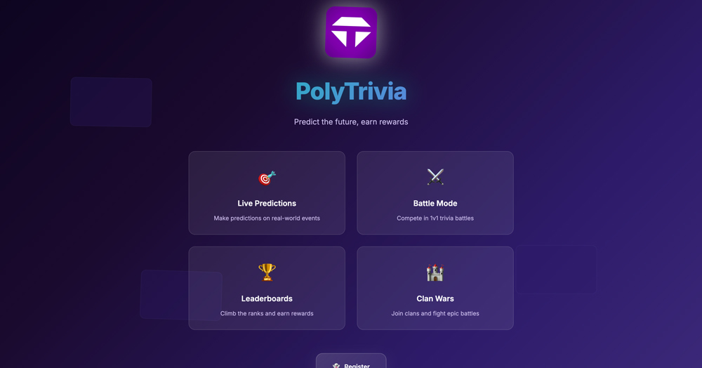 PolyTrivia 是一个革命性的预测问答平台,专为社交媒体社区、电竞粉丝和问答爱好者设计。它将真实世界的事件预测转化为引人入胜的竞技游戏,提供 1v1 对战、5v5 部落战争及全球排行榜,并即将推出原生代币奖励系统。